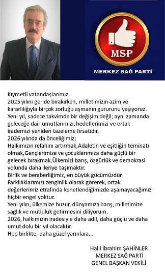 Merkez Sağ Parti Genel Başkan Vekili Halil İbrahim Şahinler, Yen yıl dolayısı ile bir mesaj yayınladı. Şahinler'in mesajı şöyle: