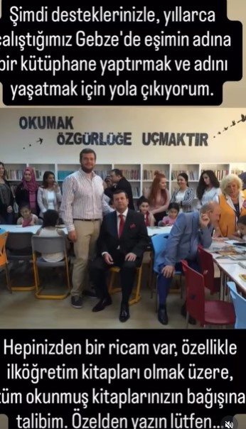 Şimdi desteklerinizle, yıllarca çalıştığımız Gebze’de eşimin adına bir kütüphane yaptırmak ve adını yaşatmak için yola çıkıyorum.
