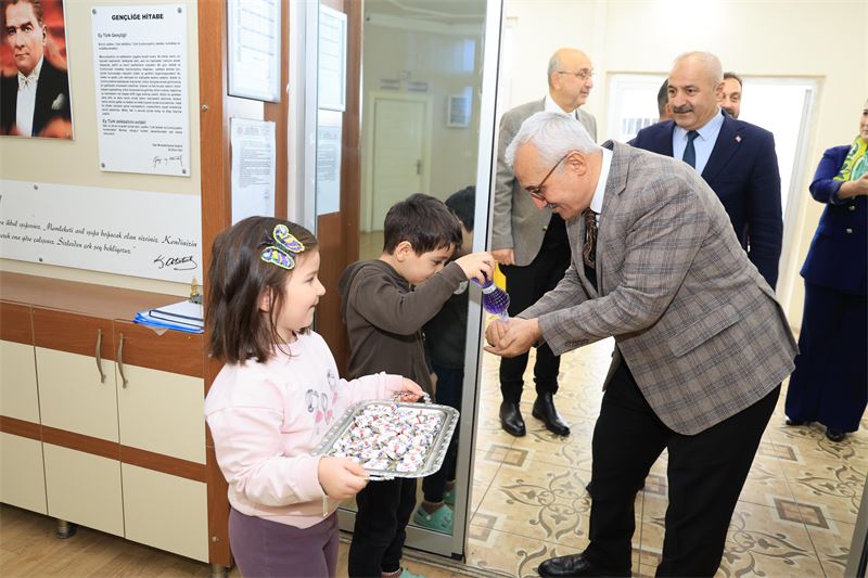 Hadiye Cemre Altıntaş Anaoku'nun minik öğrencileri Devlet büyüklerine kolonya iikram ettiler.