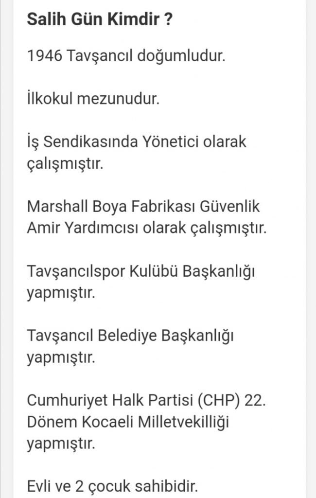 Cumhuriyet Halk Partisi 22. Dönem milletvekili ve Tavşancıl Belediyesi Kurucu Belediye Başkanı olan Salih Gün'ü kaybettik. Cenazesi yarın öğle namazına müteakip Tavşancıl merkez Camii den kaldırılacak.