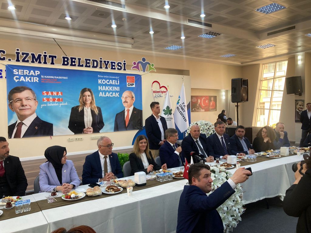 Eski Başbakan Ahmet Davutoğlu, Gebze’de esnaf ziyaretinde bulundu, basın mensupları ve muhtarlarla akşam yemeği yedi. Davutoğlu, “CHP’nin listesi Gebzelilerin büyük taktirini almış, sahada çok sıcak bir ilgi gördük. CHP Kocaeli’de en az 6 vekil çıkartır. Karşılaştığımız Gebzeliler Serap Çakır’a ‘vekilim’ diye hitap ediyor zaten. Gebzeliler Çakır’a mazbatayı vermiş” dedi.
