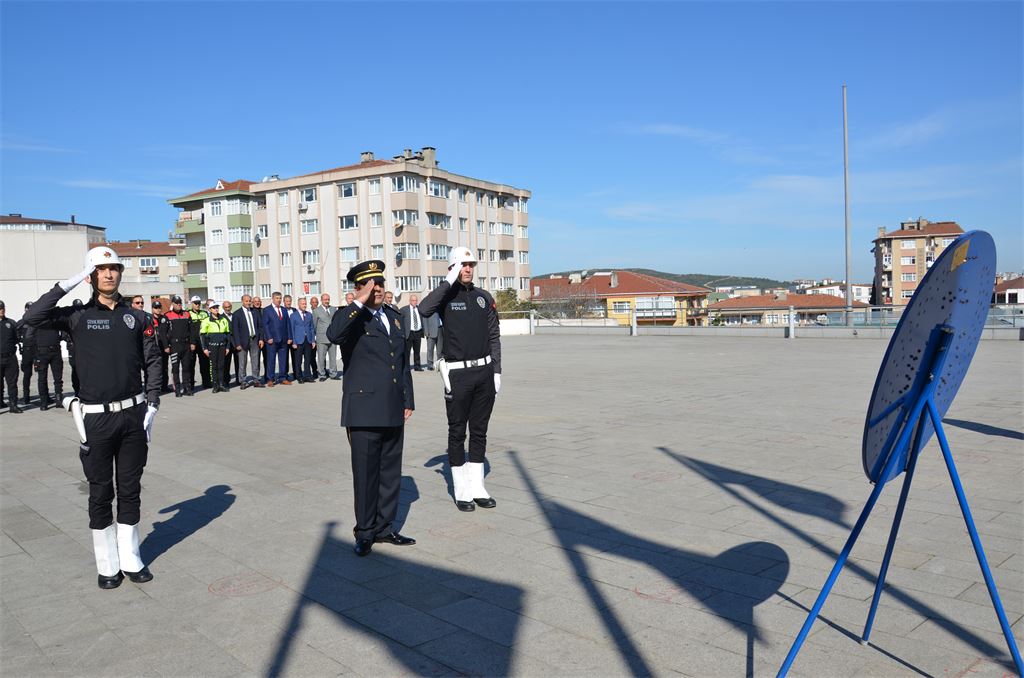 Gebze İlçe Emniyet Müdürü Adil Uğur Bilgili Atatürk Büstü'ne çelenk koydu ve saygı duruşunda bulundu.