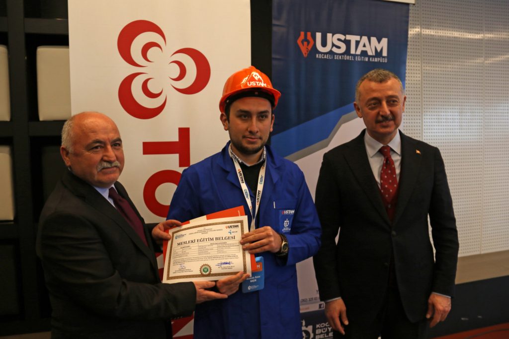 “MUTLU OLACAKLARI BİR MESLEĞE SAHİP OLDULAR”Projenin iş hayatında gençleri bir adım öne çıkardığını belirten Başkan Büyükakın, “13 gencimiz, Torun Bakır A.Ş. tarafından bizim yürüttüğümüz projede CNC Freze Operatörlüğü konusunda yetiştirildi. Şimdi onlar artık yapmaktan keyif alacağı ve çalışırken mutlu olacakları bir mesleğe sahip oldu. Torun Bakır da bunun ortamını sağladı. Normalde burada kursa başlayan 13 arkadaşımızın sadece 7’sine istihdam edilmesi taahhüt edilmişti. Şimdi firmamız güzel bir jest yaptı ve kursu bitiren 13 arkadaşımızın 13’ü de istihdam edilecek. Gerçekten bu şehrin çok önemli bir eğitim potansiyeli var. Diğer taraftan üretim potansiyeli var, diğer taraftan da yetişmiş insan potansiyeli var. Sadece aranan niteliklerin birbirleri ile eşleştirmeyi başardığımızda aslında çok ciddi bir mesafe kat edeceğiz. USTAM projesi Kocaeli’nin geleceğine özellikle gençlere ve diğer tarafta üretim sektörüne çok ciddi katkı sağlayacak bir projedir” ifadelerini kullandı.