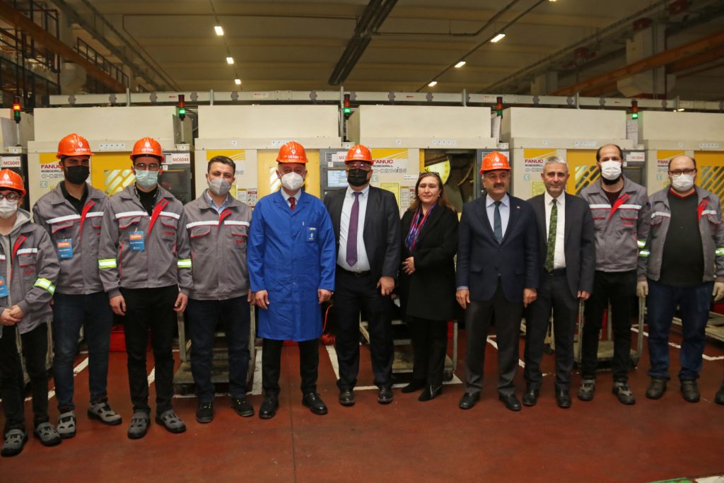 SERTİFİKALARINI BAŞKAN BÜYÜKAKIN’IN ELİNDEN ALDILARKonuşmaların ardından sertifika törenine geçildi. USTAM projesi kapsamında mezun olan Ahmet Said Terzi, Barış Öztürk, Emrah Arslan, Enes Uçar, Fatih Çimşir, İsmet Uyur, Kenan Türkdoğan, Mehmet Engin Turkal, Muhammed Emin Diren, Mustafa Emre Kaşık, Salih Emre Duman, Ufuk Koçak ve Uygar Akkoyun, mesleki eğitim sertifikalarını Başkan Büyükakın ve diğer protokol üyelerinin elinden aldı. ‘USTAM’ yazılı berelerini de takan kursiyerler ardından üretim alanında işbaşı yapacakları makinelerin başına geçti. İş sahibi olan gençlerin heyecanına ortak olan Başkan Büyükakın, onları çalışacakları makine başında da ziyaret etti. İş elbisesini giyerek üretim alanına geçen Başkan Büyükakın, istihdam edilecek kursiyerlerin yapacakları uygulamaları yerinde görerek, ustalarından bilgi aldı.