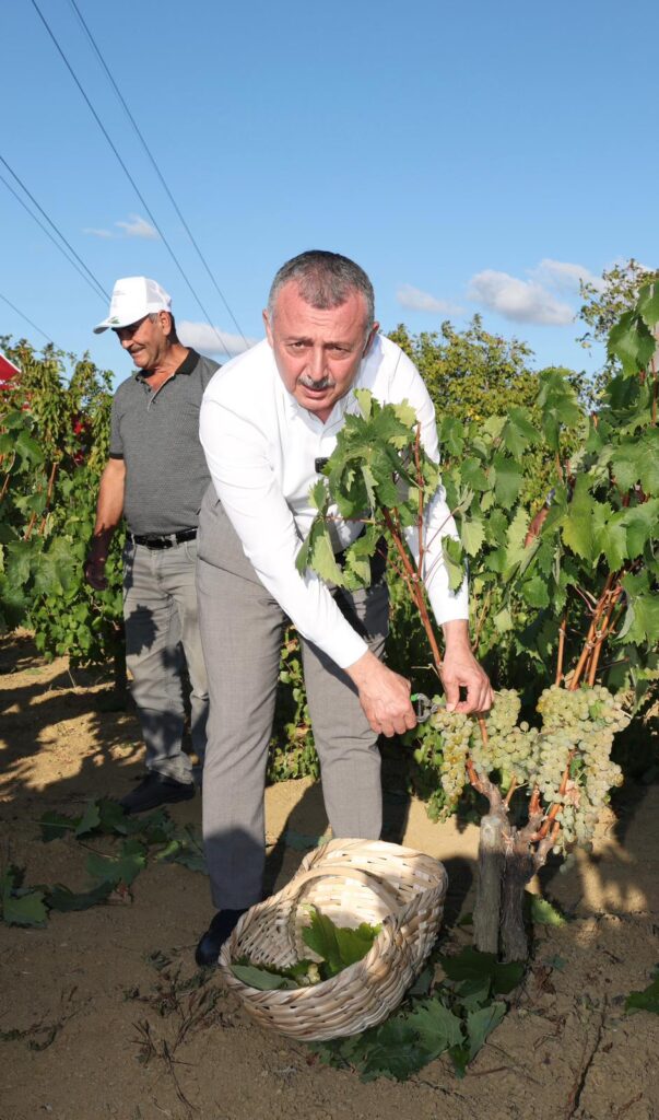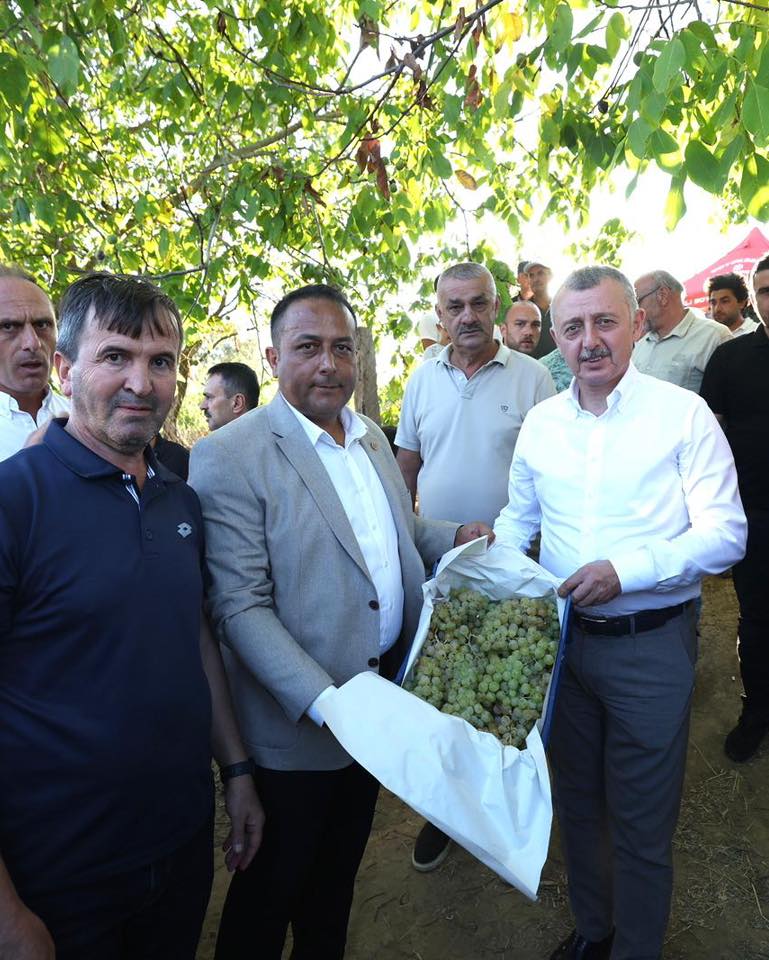Kocaeli Büyükşehir Belediye Başkanı Doç Tahir Büyükakın, Kocaeli Büyükşehir Belediyesi’nin gübre ve mazot desteği ile üretilen üzümlerin hasadına katıldı.
