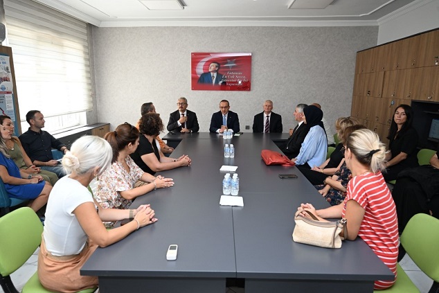26 derslikli okulun atölye ve laboratuvarlarında incelemelerde bulunan Vali Seddar Yavuz, daha sonra okul idarecileri ve öğretmenler ile bir araya geldi.