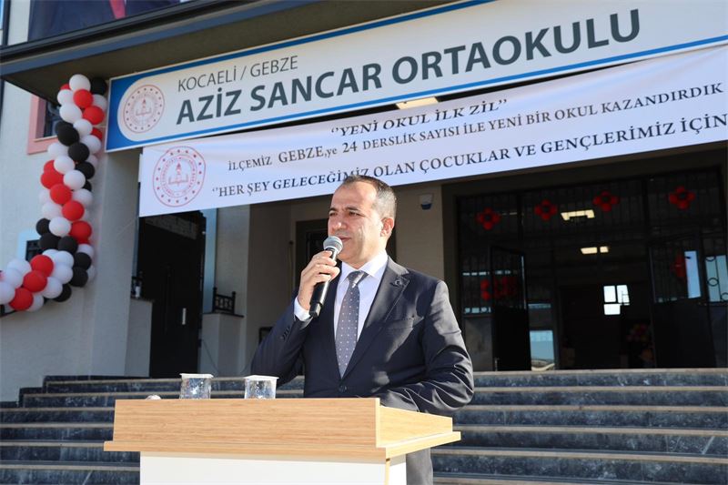 Gebze’de eğitime değer katacak bir yatırım tamamlandı. Aziz Sancar Ortaokulu’nun açılış programı; AK Parti Kocaeli Milletvekili Cemil Yaman, Gebze Kaymakamı Mehmet Ali Özyiğit, Gebze Belediye Başkanı Zinnur Büyükgöz, İlçe Milli Eğitim Müdürü Şenol Pekgöz, Gebze Yenikent Muhtarı Esengül Aktaş, AK Parti İlçe Kadın Kolları Başkanı Habibe Çırak, AK Parti Gençlik Kolları Başkanı Bilal Durmuş Kurt, öğretmenler, ebeveynler ve öğrencilerin katılımıyla gerçekleştirildi.