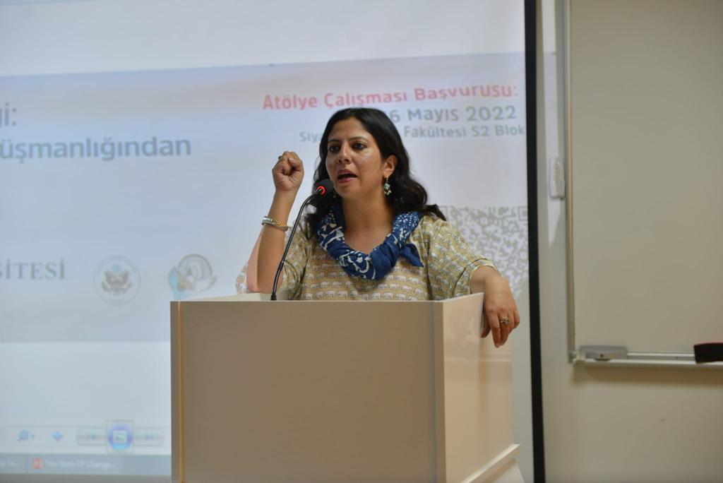 Hindistan’tan katılan gazeteci aktivist Dr.Tabeenah Anjum ise konuşmasında, “Bizzat yabancı düşmanlığının olduğu, bizzat göç ve mülteci varlığının olduğu bir bölgede gazetecilik faaliyetlerini yürütüyorum. Elbette bizler gazeteci olarak yerinden yurdundan edilmiş, evsiz bir çaresiz bırakılmış kişiler hakkında yazmaya ve onların savunuculuğunu yapmaya devam edeceğiz. Bu insanlar keyifleri için ülkelerinden ayrılmıyorlar. Maruz kaldıkları durumdan kurtulmak için göç ediyorlar. Benim yaşadığım bölgedeki göçmenlerin yaşamış olduğu yerleşim alanlarını gördüğünüz zaman o evsizlik hissinin, evsizlik olgusunun ne olduğunu tam olarak görebilirsiniz. Gazeteciler ve toplum bu durumla empati kurmalıdır.”