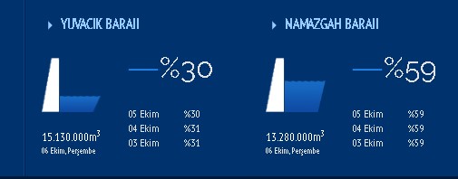 Yuvacık Barajı bu seviyelerde iken, Kocaeli Bölgesi'nin bir sonrakı su tedarik kaynağı olan ve Kocaeli'nin kuzey kesimine Kandıra taraflarına su sağlayan Namazgah Barajı'nın su seviyesi de yine 05 Ekim itibariyle yüzde 59 olarak ölçüldü.