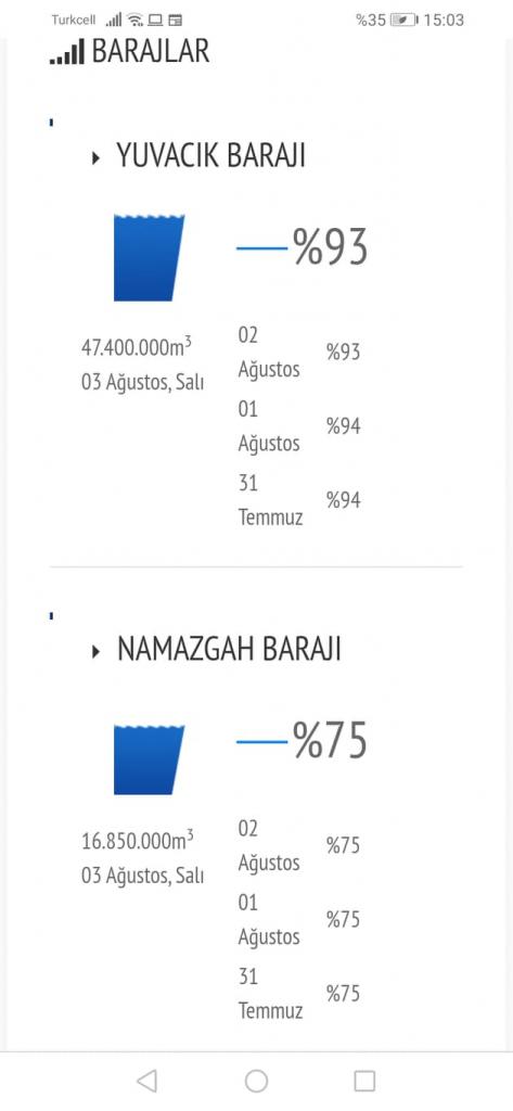 Bölgemizin su ihtiyacını karşılayan en büyük ve en önemli su kaynaklarımızdan olan İSU sorumluluğundaki Yuvacık Barajı’ndaki su seviyesi yüzde 93 olarak ölçüldü. Gerek geçen kışın yağışlı ve kar yağışlı geçmesi gerekse son günlerde Samanlı Dağı taraflarına düşen yağmur yağışlarının yoğun olması en büyük su kaynağımızdaki su stoğunu artırmış durumda. İşte Yuvacık Barajı ile Kandıra tarafına su sağlayan Namazgah barajının su seviyesi 03 Ağustos itibariyle seviyeleri şu şekilde: